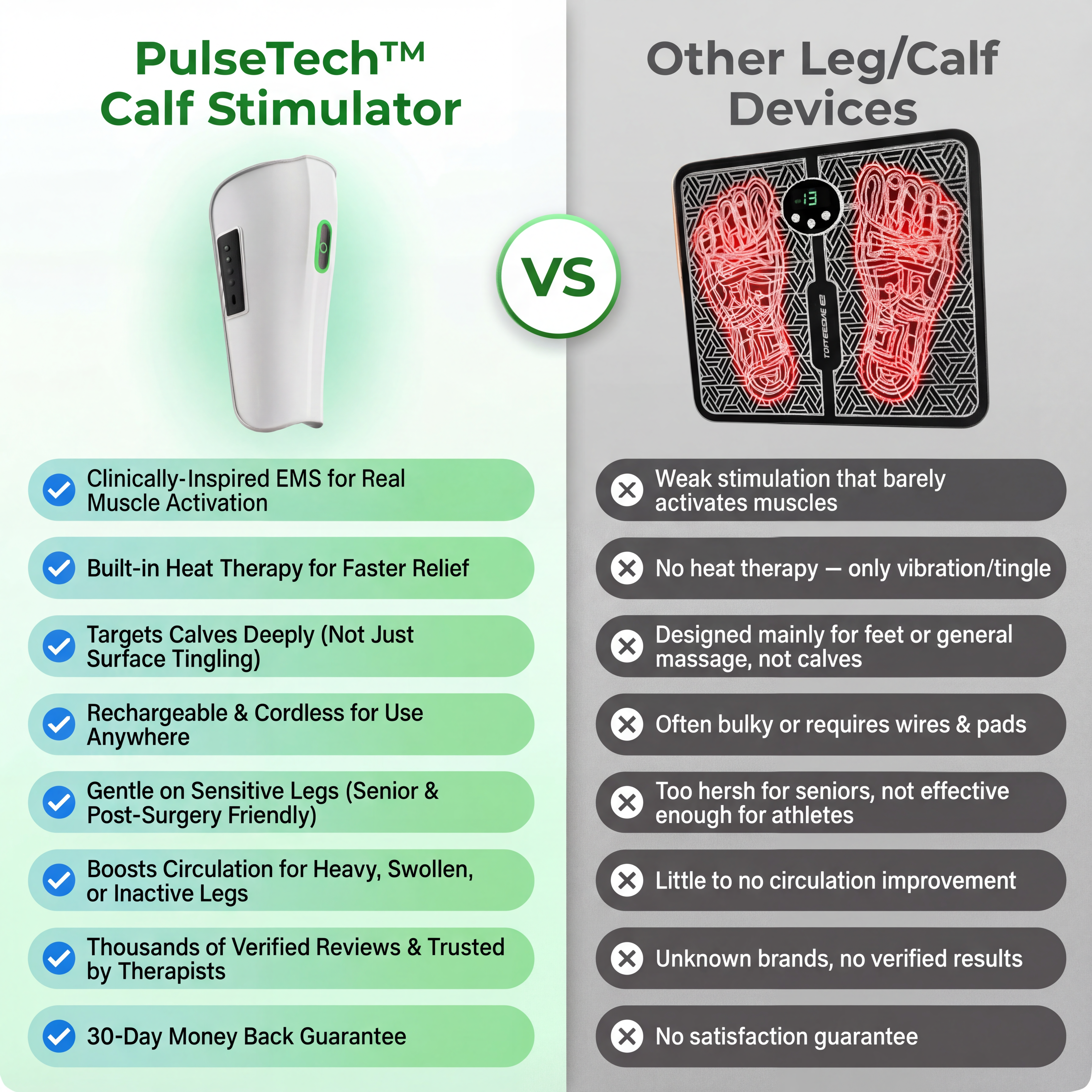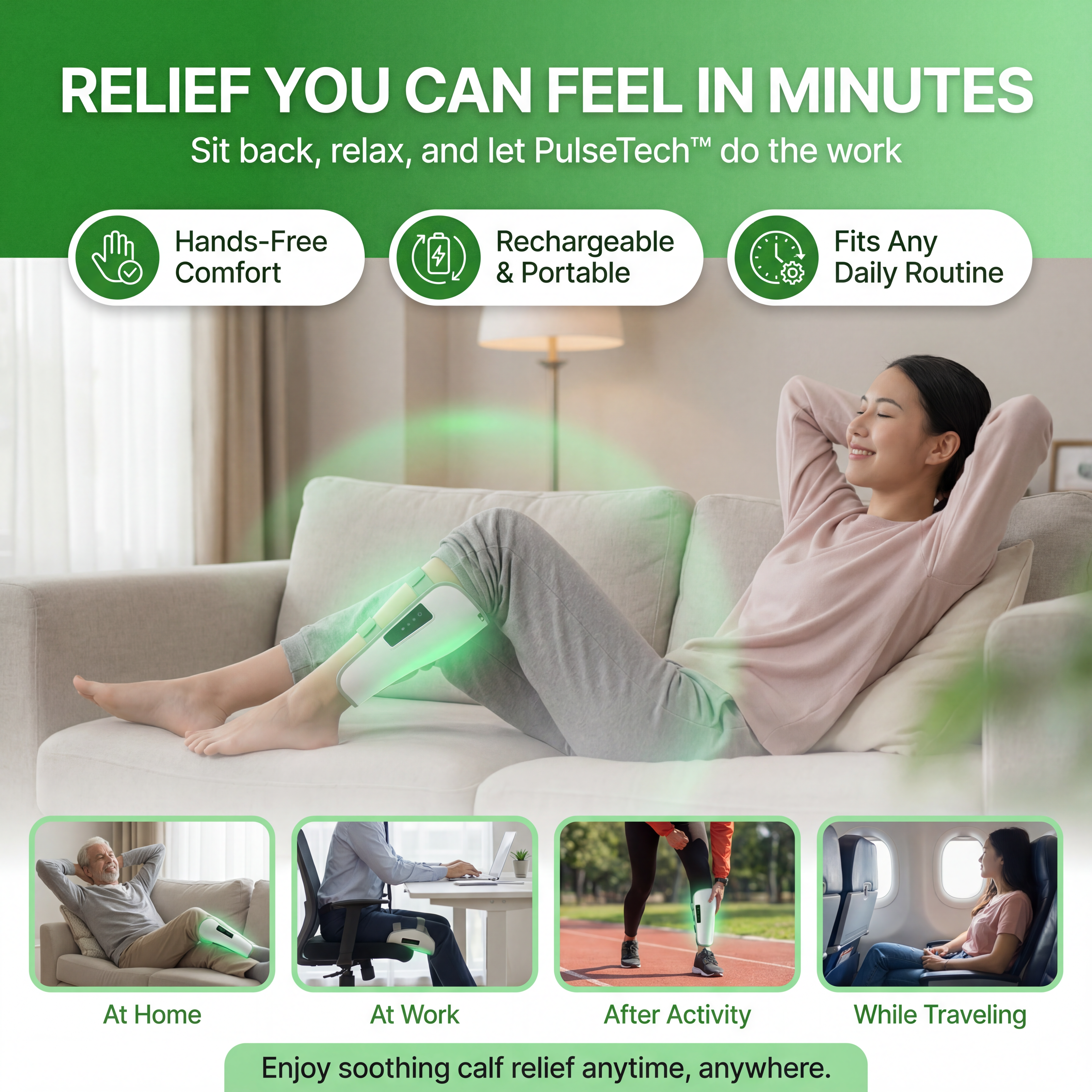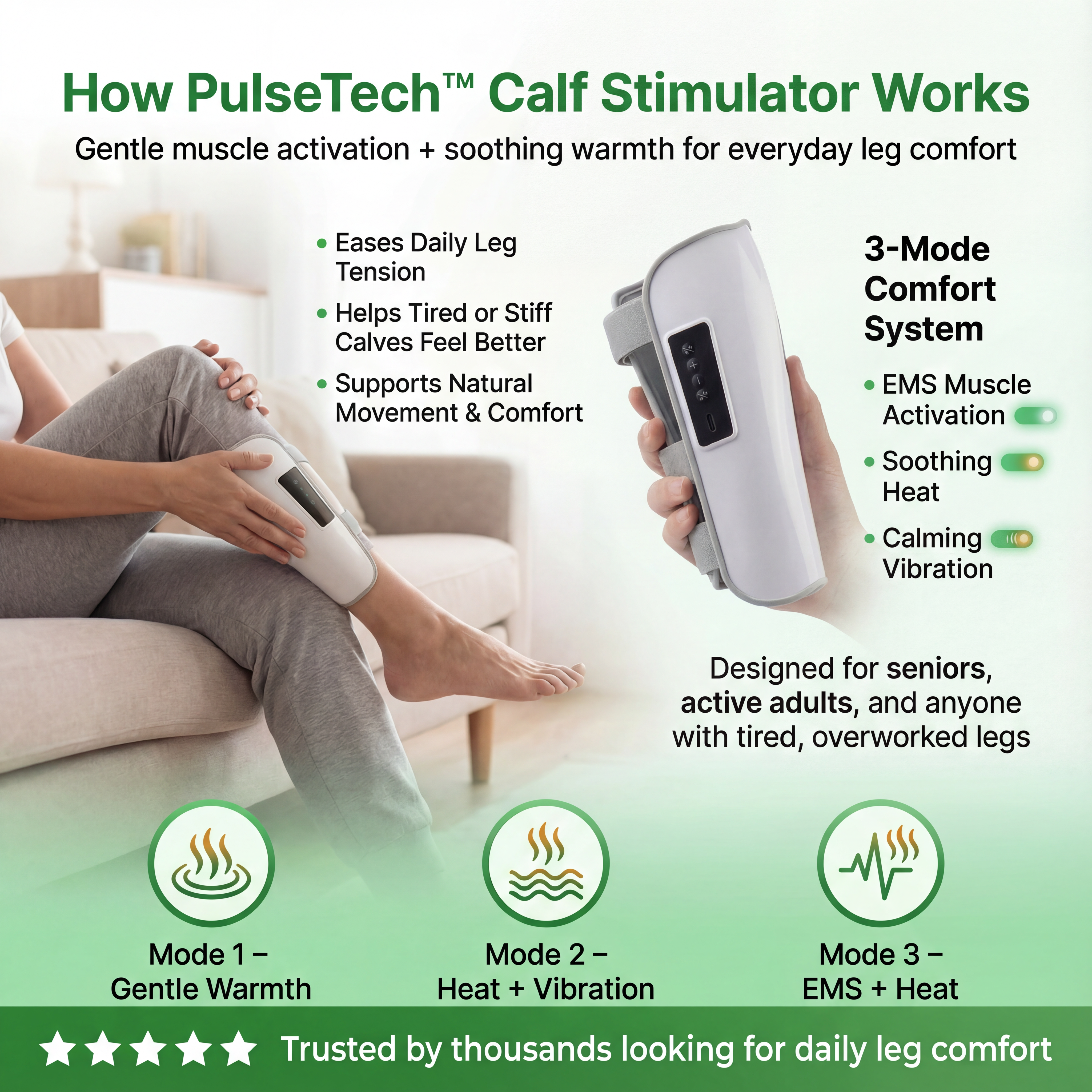 Discover how the PulseTech™ Calf Stimulator brings soothing relief and renewed ease to anyone dealing with tired, recovering, or overworked legs. Whether you're rebuilding strength, staying active, or sitting for long hours, it helps your calves feel lighter, more relaxed, and ready for whatever your day brings.